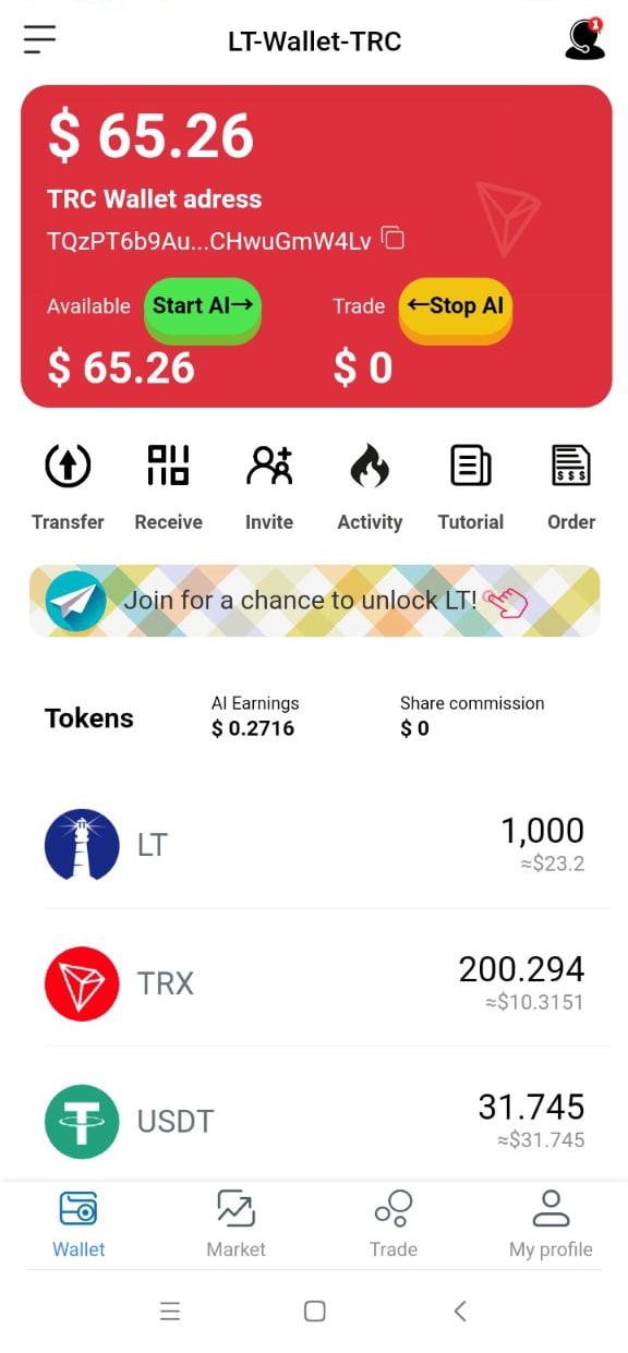 1. Select the LT wallet address of the corresponding chain to receive money