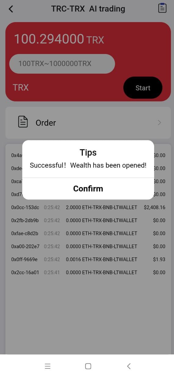 3. Enter the amount and click to start the transaction